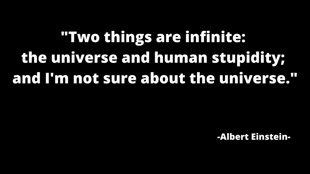 “Ada dua hal yang tidak terbatas: alam semesta dan kebodohan manusia; dan saya tidak yakin dengan alam semesta.”