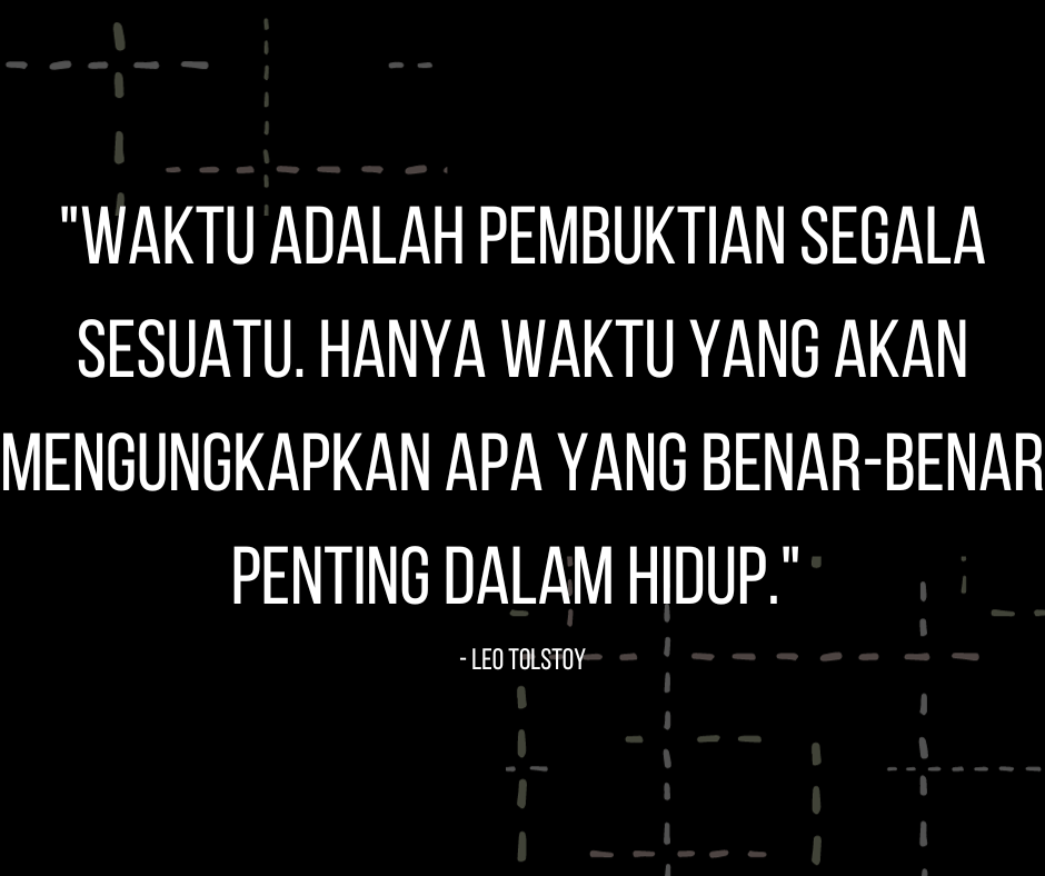 - “Waktu adalah pembuktian segala sesuatu. Hanya waktu yang akan mengungkapkan apa yang benar-benar penting dalam hidup.” – Leo Tolstoy