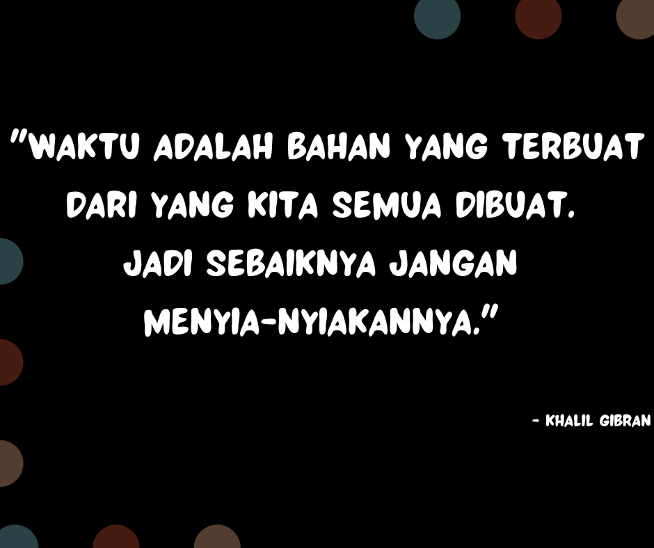 - “Waktu adalah bahan yang terbuat dari yang kita semua dibuat. Jadi sebaiknya jangan menyia-nyiakannya.” – Khalil Gibran