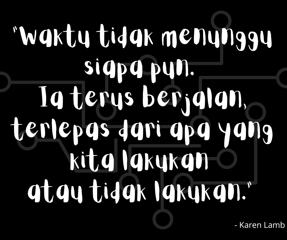 - “Waktu tidak menunggu siapa pun. Ia terus berjalan, terlepas dari apa yang kita lakukan atau tidak lakukan.” – Karen Lamb