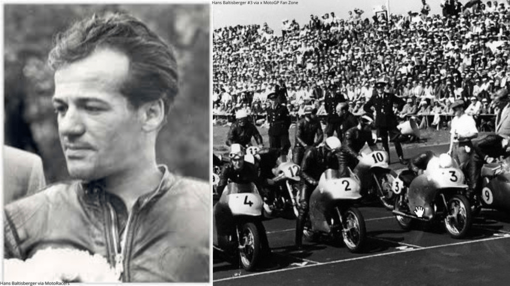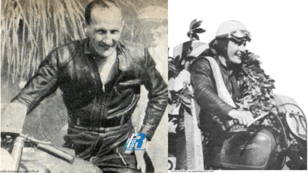 Pembalap berkebangsaan Inggris ini meninggal di usia 41 tahun saat mengalami kecelakaan di tikungan Bray Hill saat mengikuti balapan Isle Man of TT. Leslie Graham merupakan pembalap pertama yang menjuarai ajang balap motor 500cc. Di Senior Isle of Man TT pada 12 Juni 1953, dengan mengendarai motor MV Agusta ia karena kehilangan kendali atas motornya yang melaju dengan kecepatan tinggi saat mengambil tanjakan setelah dasar Bray Hill, dan tewas seketika. - Hans Baltisberger