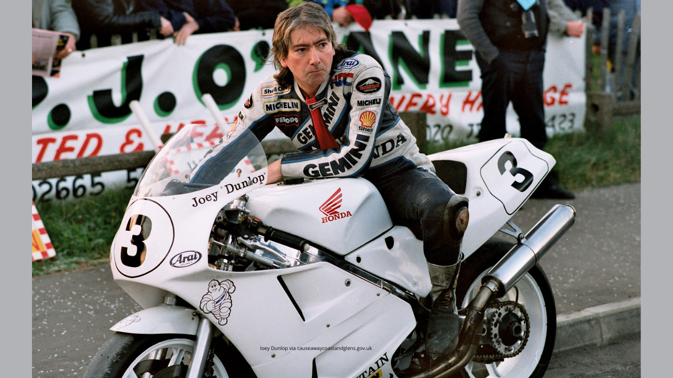 Pembalap berkebangsaan Irlandia Utara yang tewas akibat kehilangan kendali atas motornya dengan kondisi sirkuit yang basah dan tewas seketika saat menabrak pohon. Kecelakaan itu terjadi pada 2 Juli 2000, saat Dunlop memimpin balapan 120cc di Sirkuit Pirita-Kose-Kloostrimets, Tallin, Estonia. Ia meninggal di usia 48 tahun. - Daijiro Kato