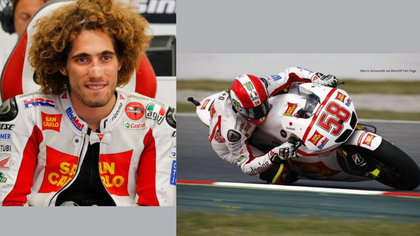 Marco Simoncelli merupakan pembalap asal Italia yang meninggal saat mengikuti balapan GP di sirkuit Sepang, Malaysia pada tahun 2011. Ia terjatuh, helmnya terlepas dan kemudian tertabrak oleh pembalap lain. Cedera serius pada kepala, leher dan dada menyebabkan pembalap dengan julukan Super Sic ini tak mampu bertahan dan dinyatakan meninggal dalam usia 24 tahun. - Luis Salom (Luis Jaime Salom Horrach)