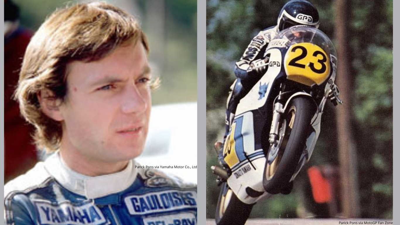 Pembalap asal Finlandia yang tewas di usia 27 tahun saat terlibat kecelakaan beruntun bersama dengan Renzo Pasolini tahun 1973 di sirkuit Monza, Italia. Motor Pasolini terpental menghantam kepala Saarinen sehingga helmnya terlepas dan kemudian tertabrak pembalap lain. Ketika balapan 250cc berlangsung, Saarinen mengendarai motor pabrikan Yamaha. Kecelakaan tragis tersebut membuatnya mengalami cedera fatal dan akhirnya meninggal. - Patrick Pons (Patrick Noël Raymond Pons)