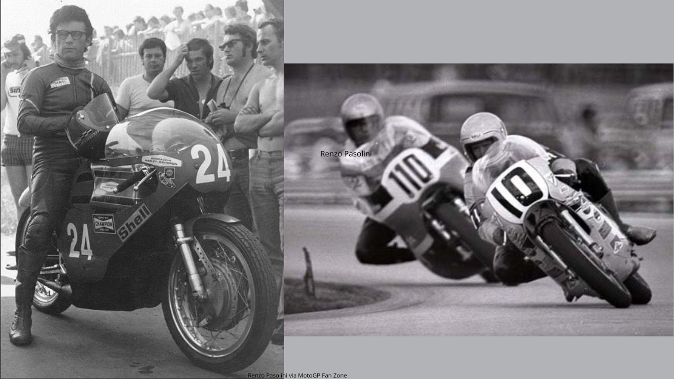 Pembalap Grand Prix asal Spanyol yang meninggal dalam usia 27 tahun akibat kecelakaan yang dialaminya saat mengikuti kejuaraan Isle Man of TT pada tahun 1970. Ia kehilangan kendali atas motornya di atas aspal yang meleleh pada lap keenam dan terakhir di kelas 250cc Lightweight TT dari tim pabrikan Ossa. - Renzo Pasolini